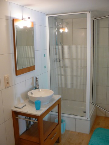 Celle-ci est composée d'une douche, d'un lavabo et d'un WC.