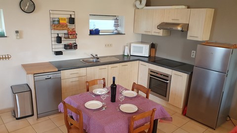 Fonctionnelle et agréable la cuisine très bien équipée permet de préparer et partager les repas durant tout le séjour.