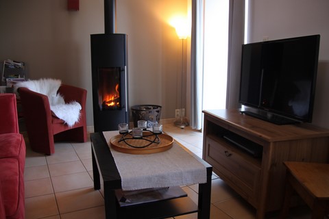 Confortable et soigneusement décoré, le salon dispose de la TV, d'un lecteur DVD et d'une chaine stéréo.