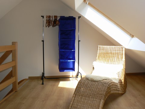 La mezzanine au-dessus du salon est soit un coin de lecture,...